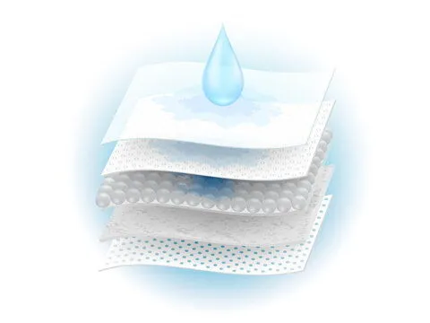 A superaqueous polymer (SAP) is a polymer compound that contains a large number of hydrophilic groups in its molecular structure, allowing it to rapidly absorb and lock up large amounts of liquid. This material has a very high water absorption capacity, which can quickly absorb and lock the liquid inside the sanitary napkin when it comes into contact with menstrual blood, thereby preventing the liquid from leaking again and keeping the surface dry and clean. This property of superaqueous polymers makes them indispensable as a key absorbent material in sanitary napkins.